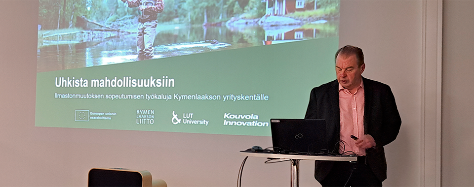 Ilmastonmuutos muuttaa Kouvolan yrityskenttää: 3E-työkalu auttaa pk-yrityksiä tunnistamaan ilmastoriskit, vahvistamaan resilienssiä ja kääntämään uhat kilpailueduksi.