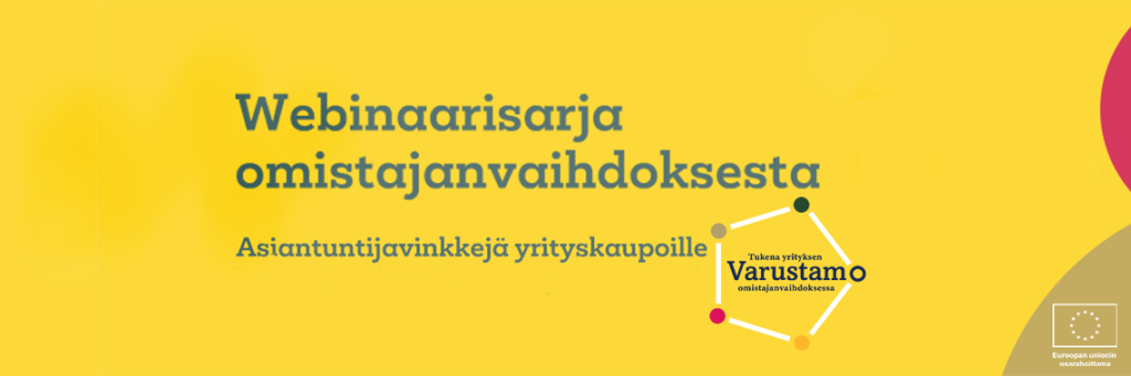 Yrityksen omistajanvaihdokseen keskittyvä webinaarisarja. Sopii sekä myyjille että yrityksen ostamista harkitseville.