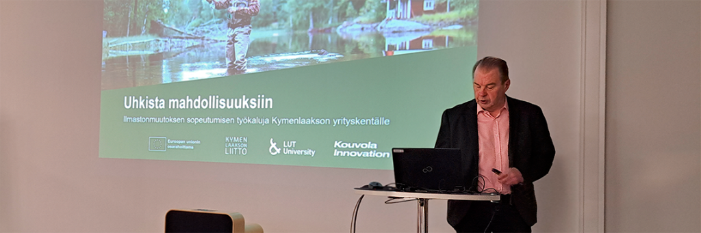 Ilmastonmuutos muuttaa Kouvolan yrityskenttää: 3E-työkalu auttaa pk-yrityksiä tunnistamaan ilmastoriskit, vahvistamaan resilienssiä ja kääntämään uhat kilpailueduksi.